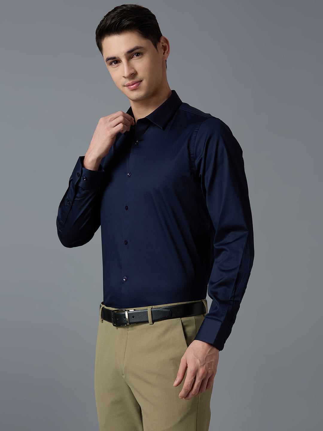 Navy Solid Slim Fit Formal Full Sleeve Shirt