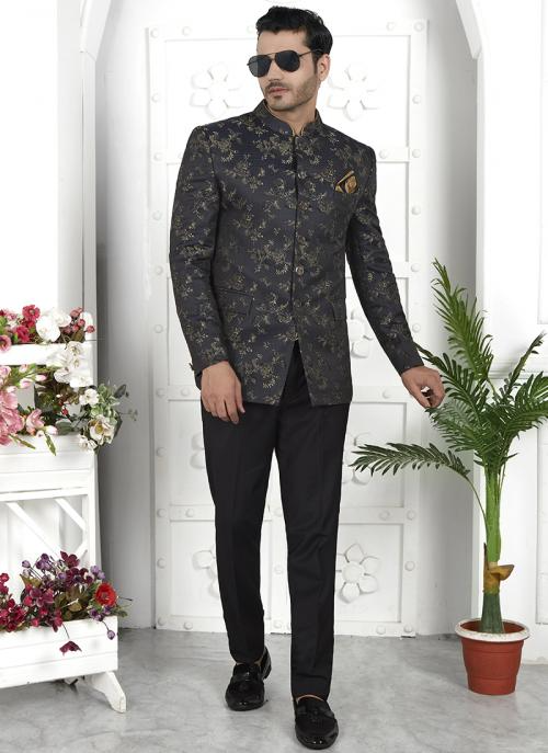 Black Imported Jaquard Silk Party Wear Pattern Pc Work Readymade Mens Jacket