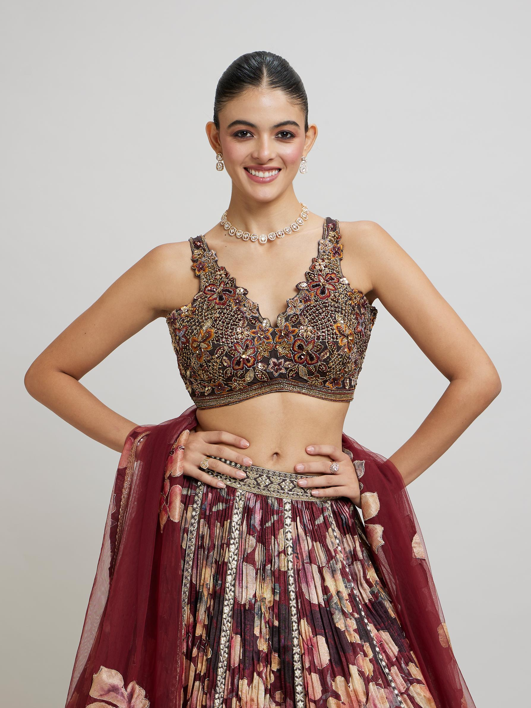Regular price Rs. 1,199.00Sale price Rs. 1,199.00 Regular priceUnit price perRs. 2,999.00Sale Sold outPRODUCT DETAILS ColourMaroon MaterialNet WorkHand Embroidery, Cutdana Work, Moti Work, Print, Sequin Work, Thread Work, Zari Items IncludedTop , Lehenga , Dupatta Wash CareDry Clean Only...