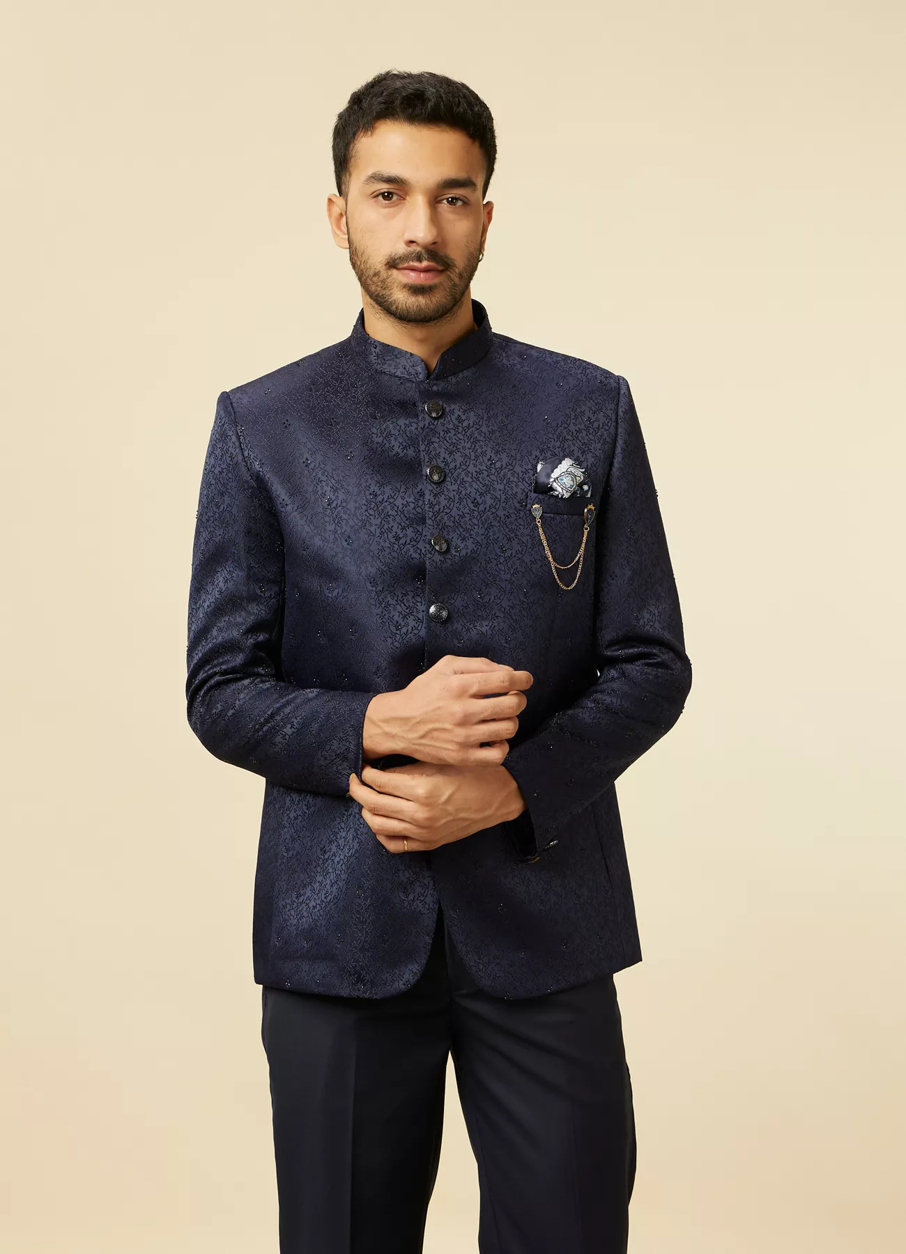 Dark Blue Bel Buti Patterned Jodhpuri Suit for men