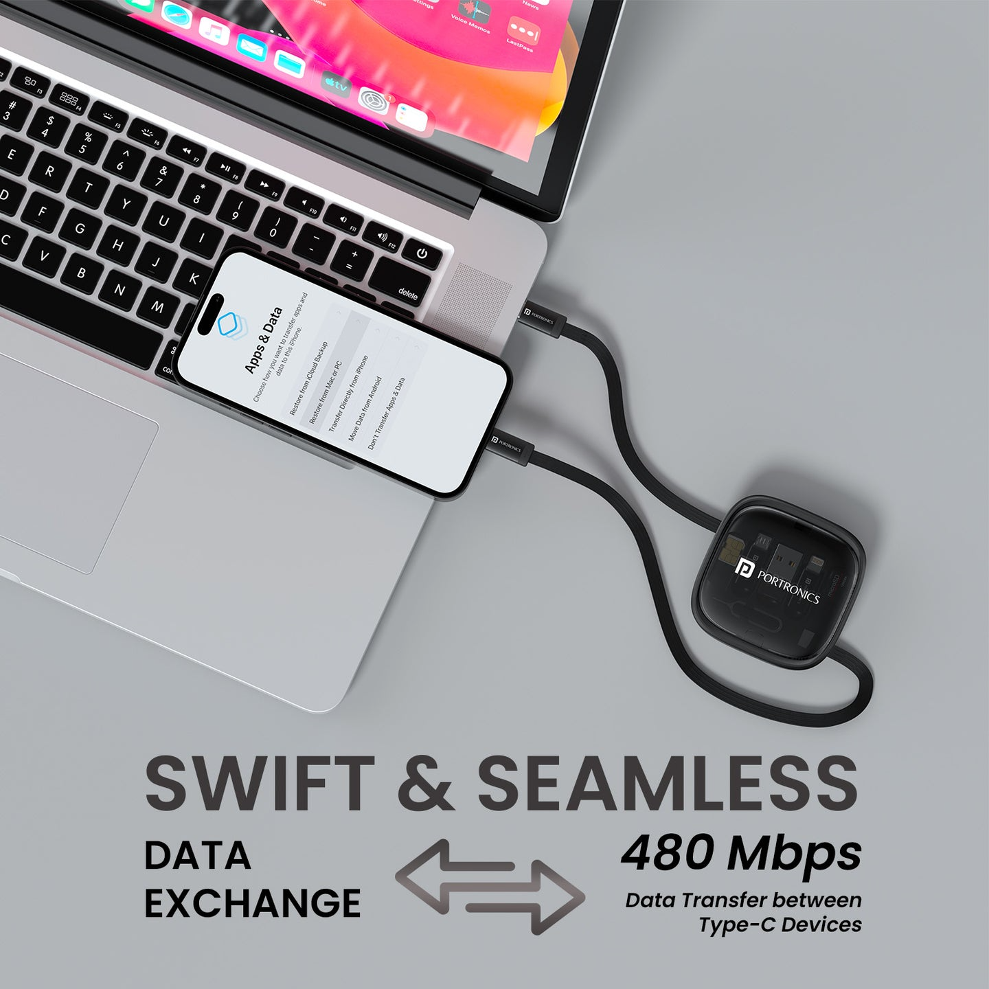 60W Max Output |Type C to Type C Retractable Cable |Micro/8 Pin/USB-A Connector | Mobile Stand